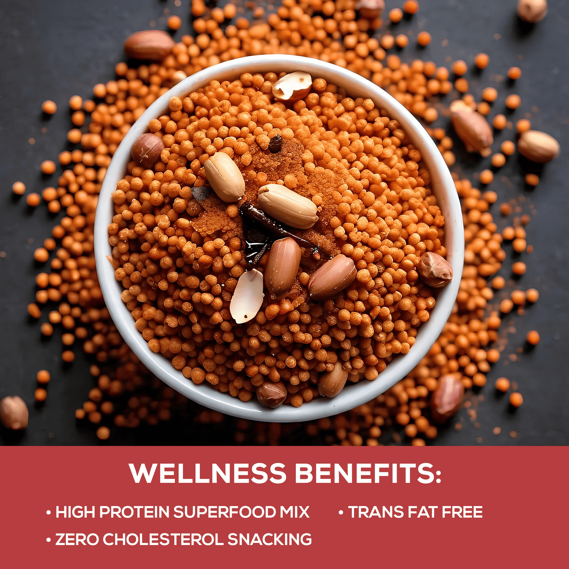 Our Millet Chivda is air-roasted, not deep-fried—so it contains less oil and zero trans fats. Plus, it’s made with a blend of nutrient-rich millets that offer fiber, protein, and sustained energy.
