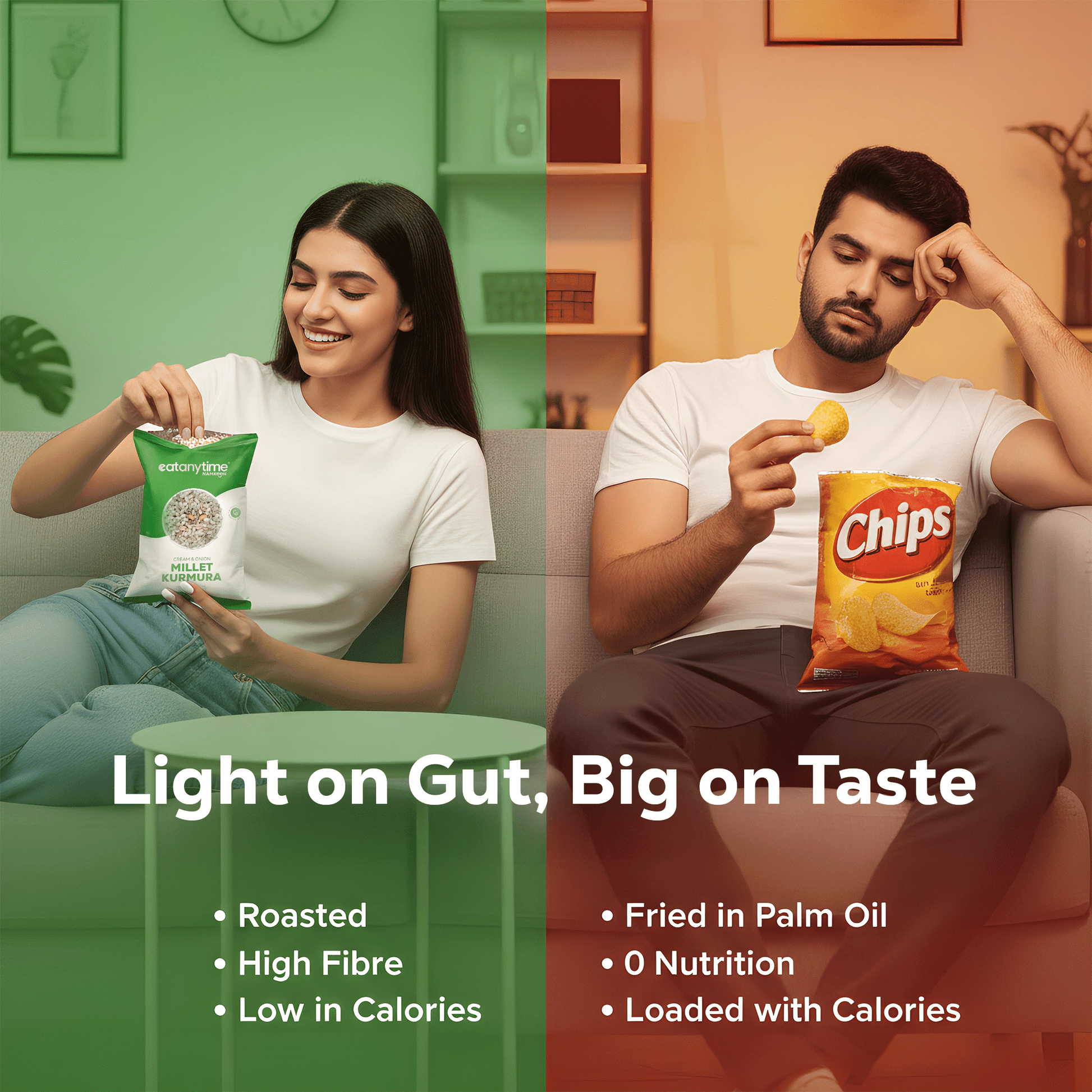 A first-of-its-kind snack, our Cream & Onion Millet Kurmura is a crunchy, better-for-you twist on your classic puffs. Air-roasted and never fried, it’s made with a wholesome millet blend and seasoned with our signature cream & onion flavour. With less oil and zero trans fats, it’s the ultimate guilt-free indulgence—perfect for every craving, anytime, anywhere.