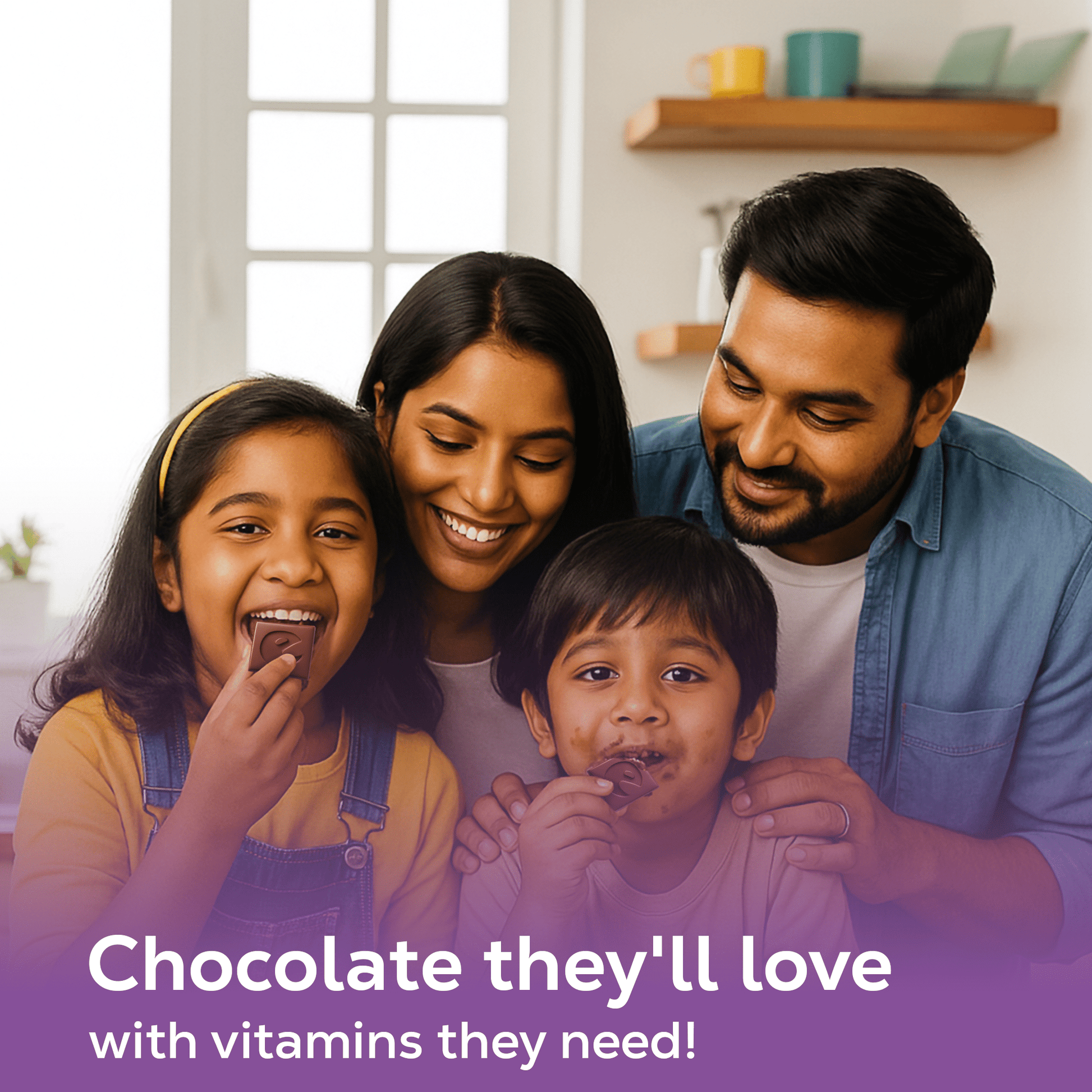 Yes! Each mini chocolate is fortified with essential vitamins like Calcium, Iron, Vitamin D, and Vitamin A—making it a safe and nutritious daily treat.