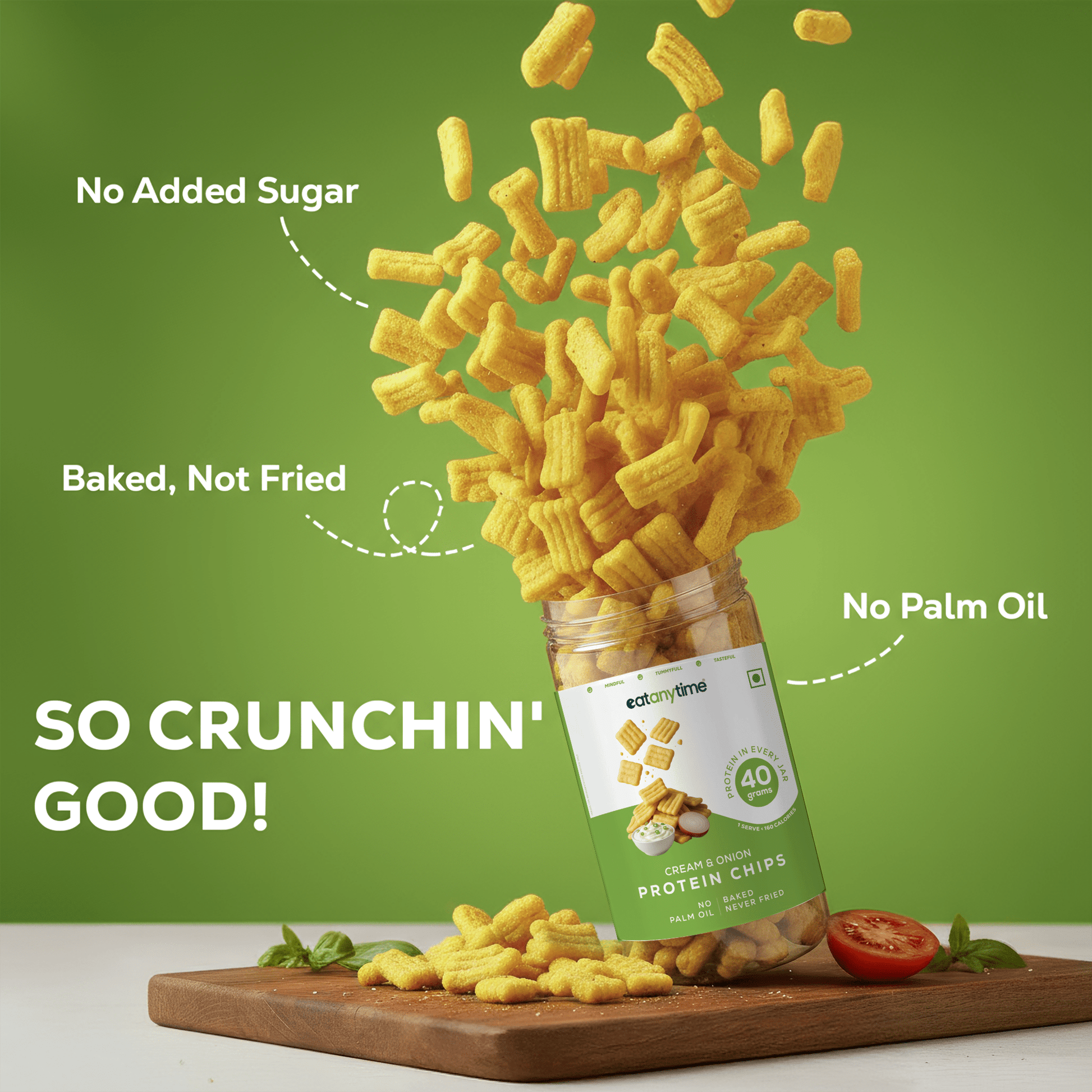 Delightfully creamy and irresistibly crunchy — our Cream & Onion Protein Chips redefine comfort snacking. Powered by a vegan protein blend of chickpea, pea, and rice, each jar fuels you with 40g of protein while keeping the calories low. It’s the classic flavor you love, made smarter and stronger.