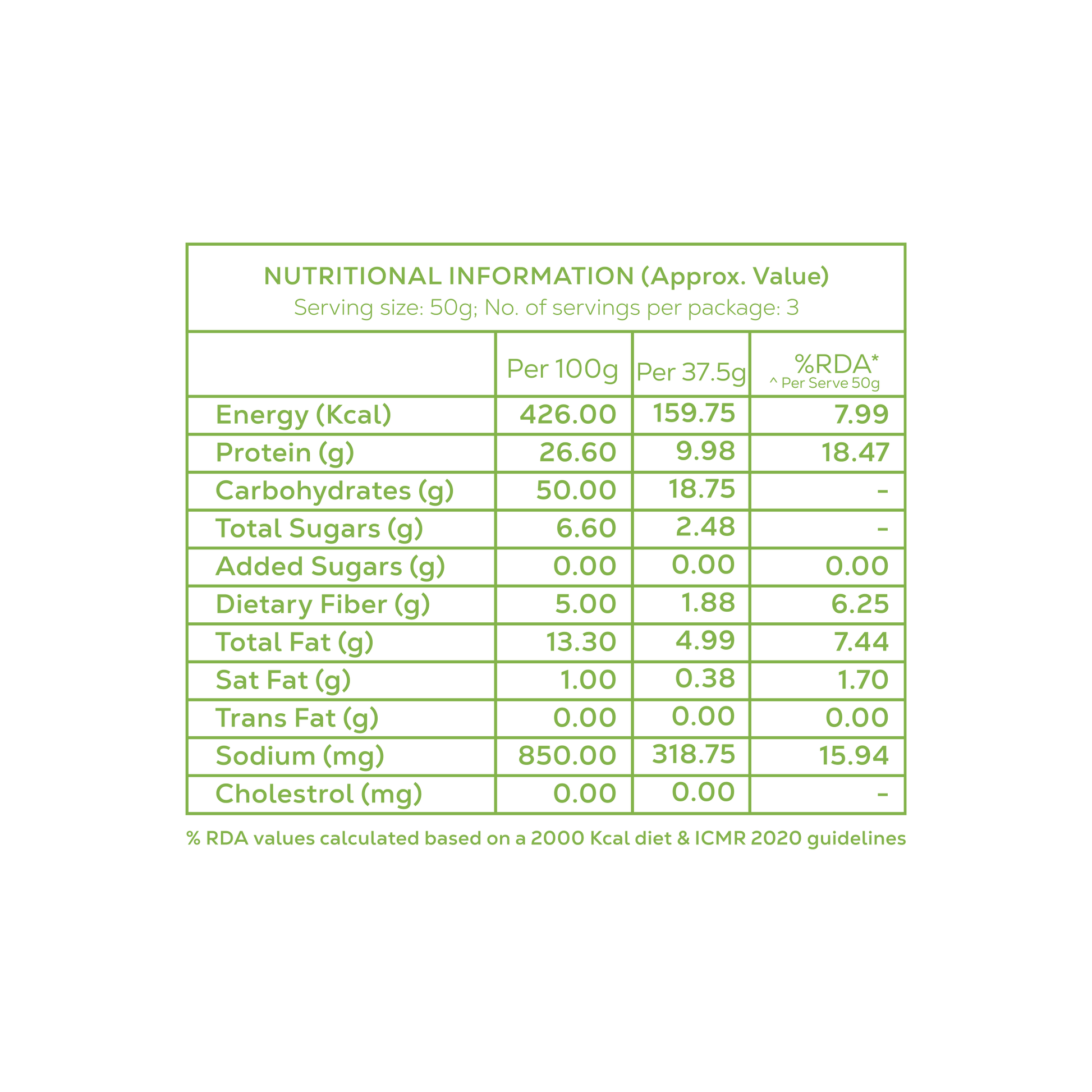 Our chips are made with high-quality plant protein sourced from chickpea, pea, and rice, giving you complete nutrition in every bite.
